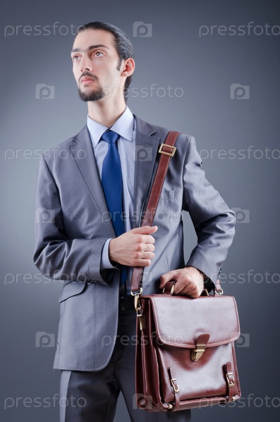 Мужчина с портфелем на сером фоне
