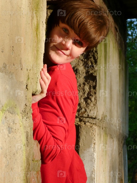 Девушка выглядывает из-за угла