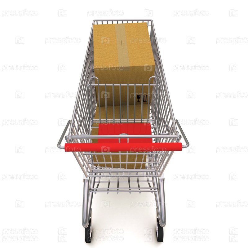 Корзина с коробками на белом фоне