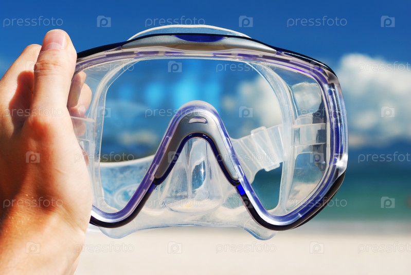 Плавательная маска на фоне неба