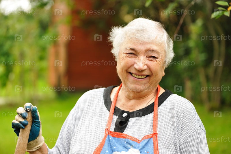Пожилая женщина во дворе