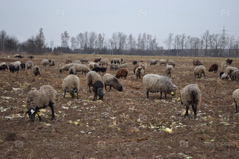 Стадо овец на осеннем поле