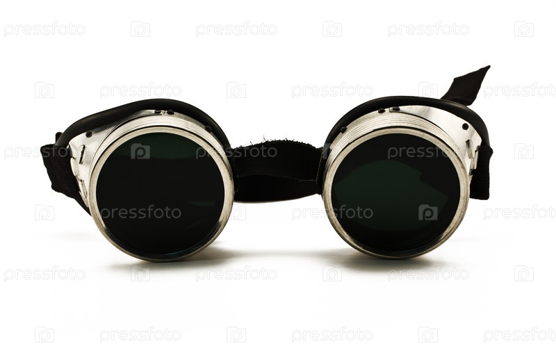 Блестящие металлические защитные очки на белом фоне