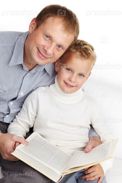 Отец и сын читают книгу
