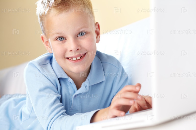 Счастливый мальчик с ноутбуком