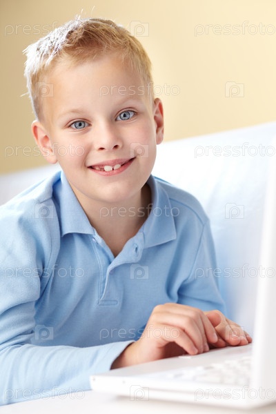 Счастливый мальчик с ноутбуком
