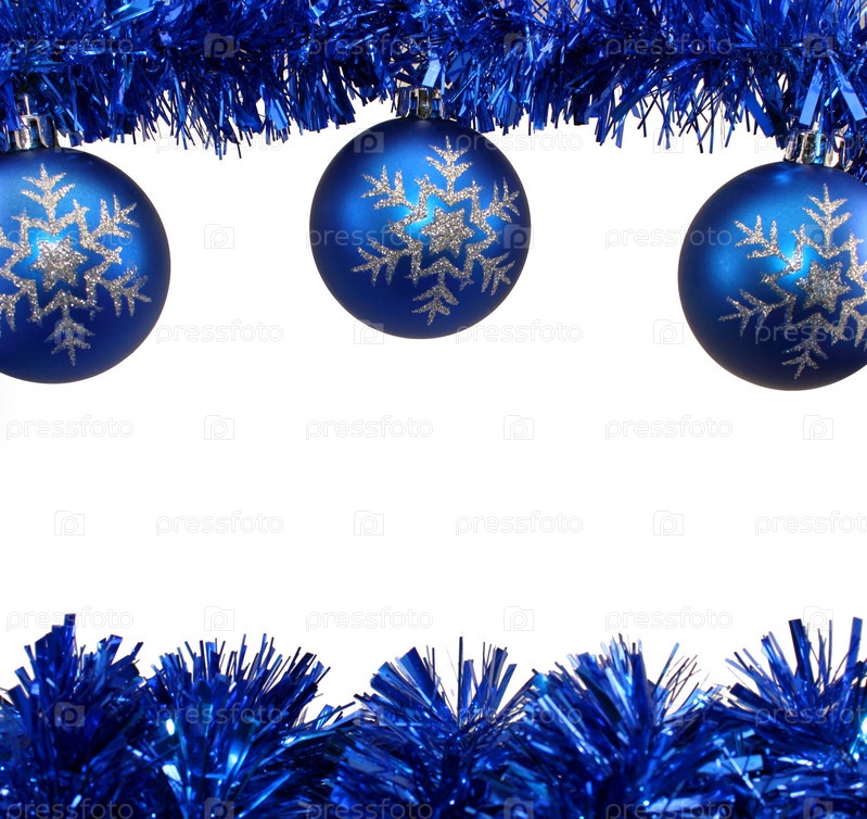 Синие рождественские шары со снежинками на белом фоне