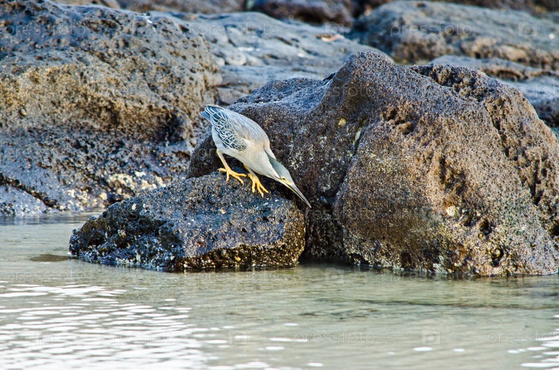 Птица на каменном берегу у воды
