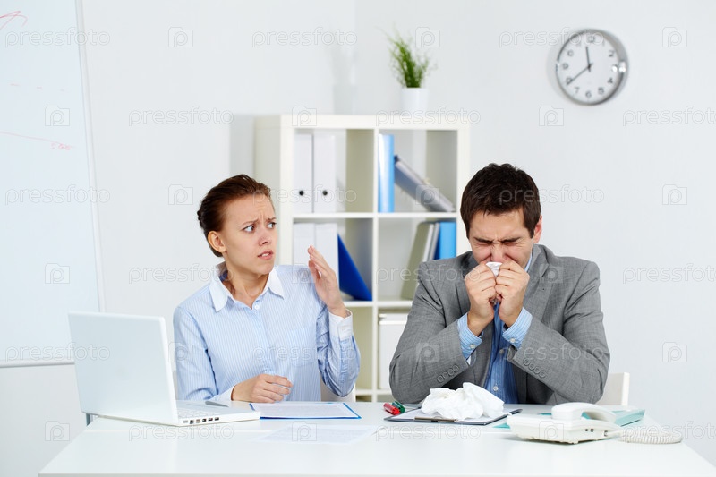 Заболевший сотрудник офиса и его коллега