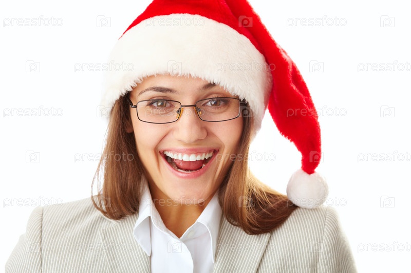 Деловая женщина в шапочке Санта Клауса