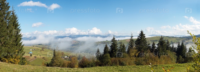 Красивая осень утром вблизи Карпат на окраине деревни