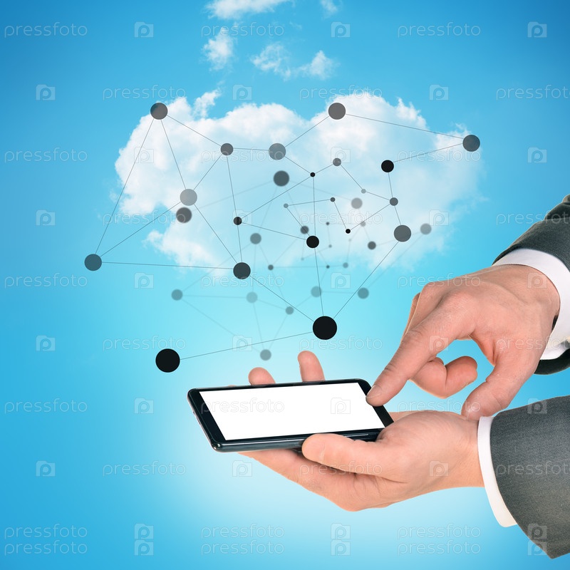 Бизнесмен руки, держа телефон с пустой экран