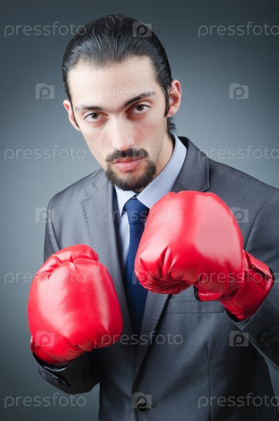 Молодой предприниматель в боксерских перчатках