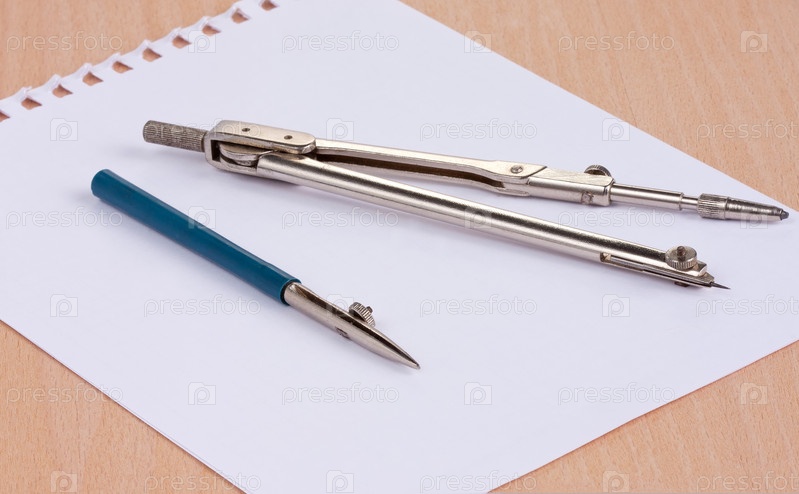 Инструменты для черчения и белый лист бумаги на деревянной поверхности