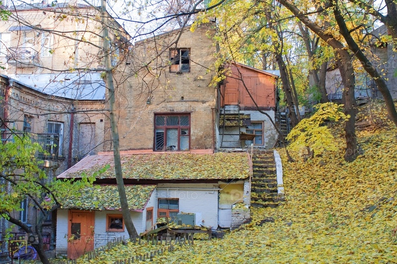 Осень, старый дом в Киеве, Украина