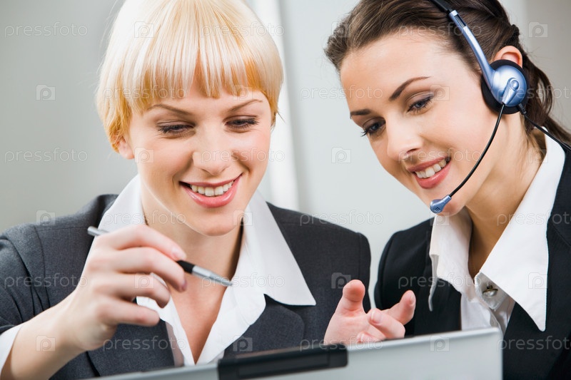 Портрет двух привлекательных деловых женщин, работающих вместе