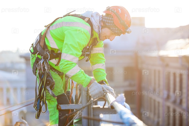 Промышленный альпинист на крыше здания