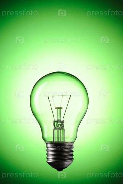 Лампочка на зеленом фоне