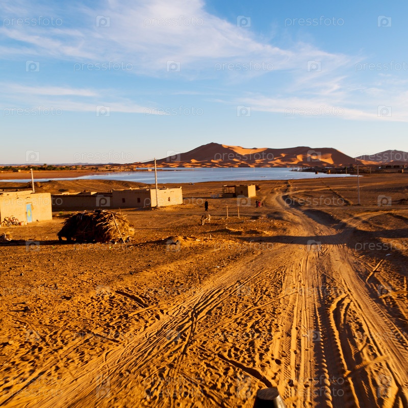 Солнце в пустыне озеро желтого песка Марокко и дюны