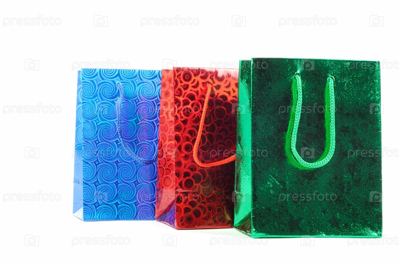 Три ярких пакета на белом фоне
