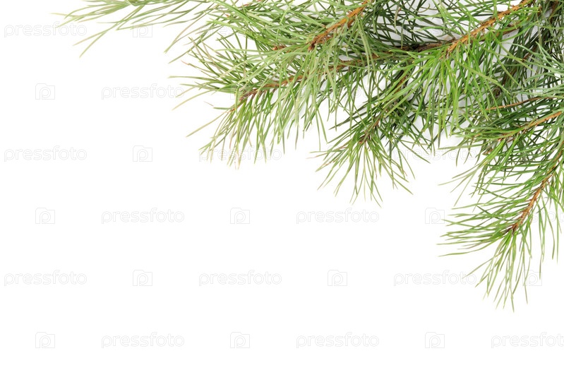 Еловая ветка на белом фоне