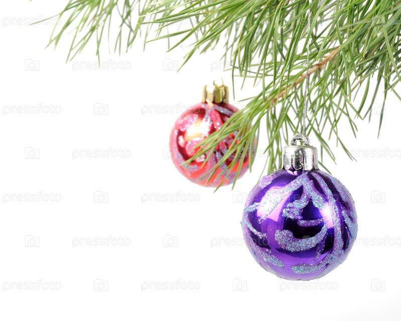 Елочные игрушки на сосновой ветке