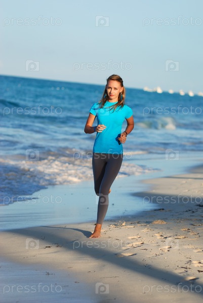 Девушка бежит по пляжу