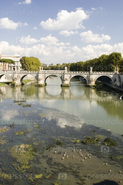 Старейший мост и Римская река Тибр Италия