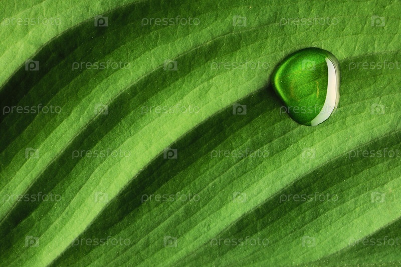 Капля воды на зеленом листике крупным планом