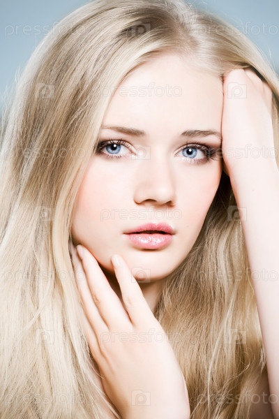 Девушка блондинка на белом фоне