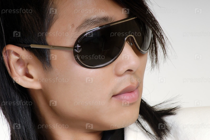 Мужчина в солнцезащитных очках на белом фоне