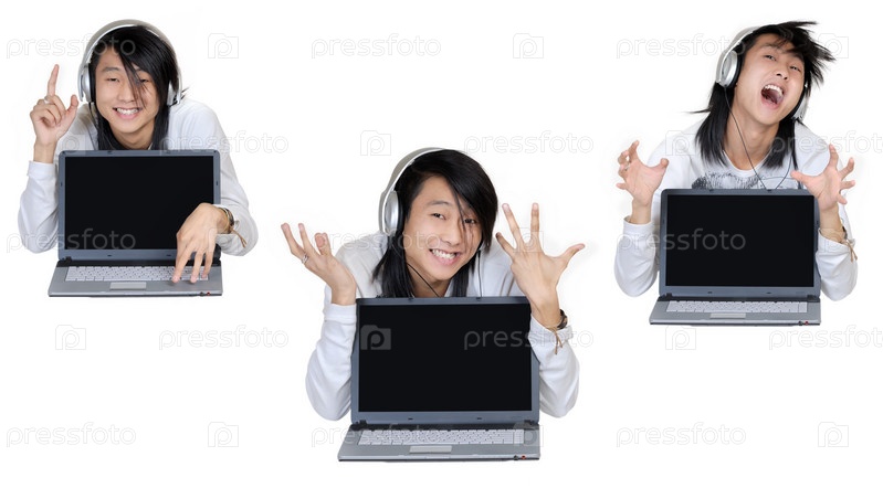 Мужчина с ноутбуком на белом фоне