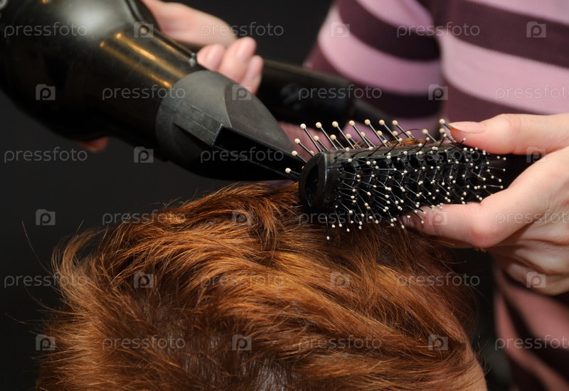 Женщине делают укладку волос