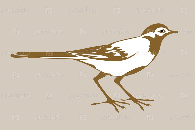 Силуэт трясогузки на коричневом фоне, векторная иллюстрация