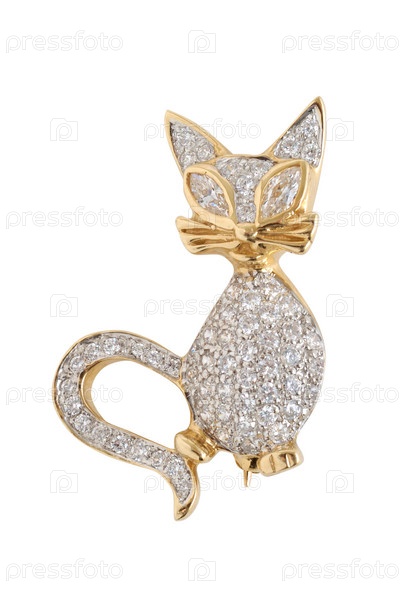 Золотая брошь на белом фоне