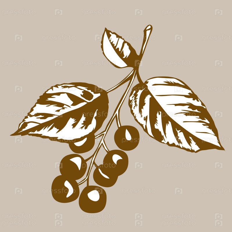 Векторное изображение ветки с вишнями на коричневом фоне