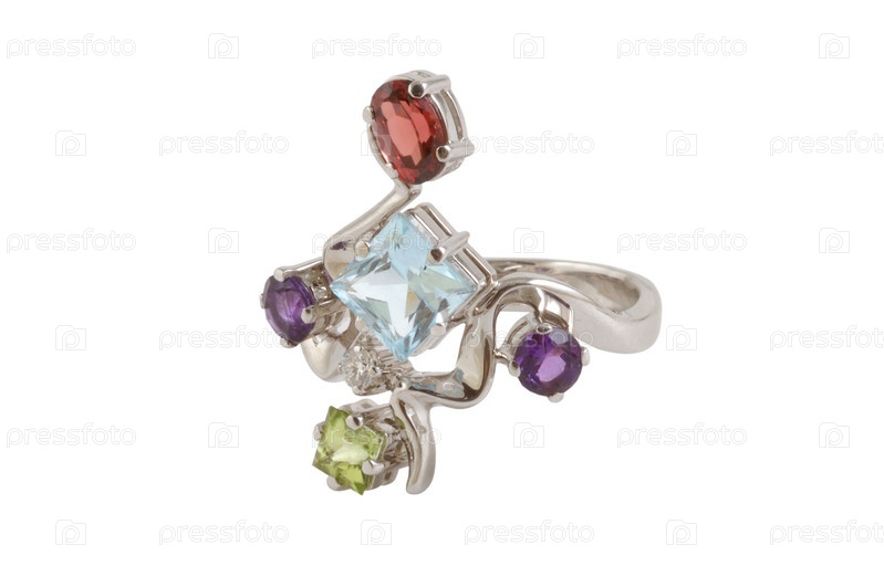 Золотое кольцо с драгоценными камнями, изолированное на белом фоне