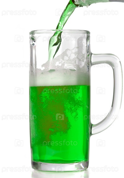 Зеленое пиво, наливаемое в кружку