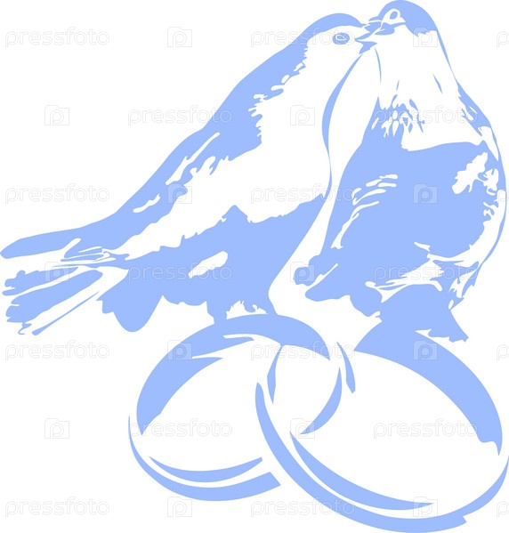 Пара белых голубей на обручальных кольцах