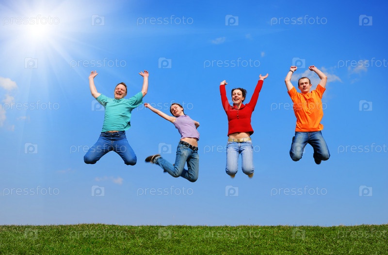 Молодые люди прыгают на открытом воздухе