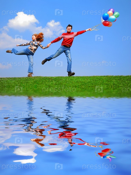 Молодые люди с воздушными шарами на открытом воздухе