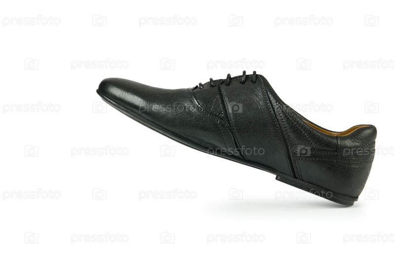 Черный ботинок на белом фоне