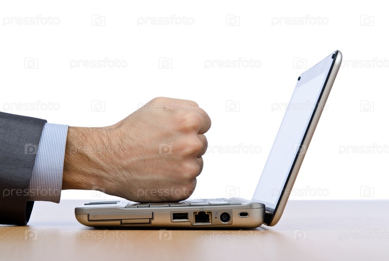Кулак бизнесмена на ноутбуке