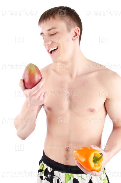 Молодой человек с манго и перцем