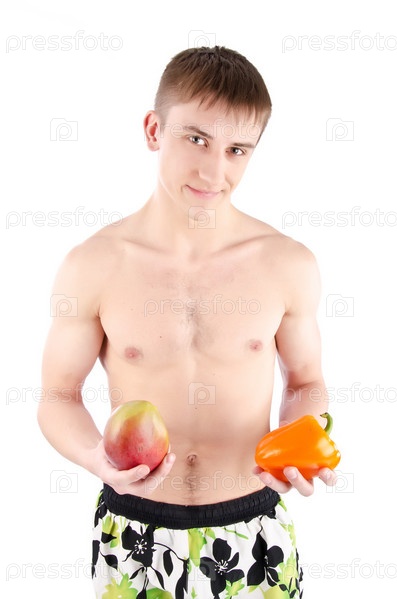 Молодой человек с манго и перцем