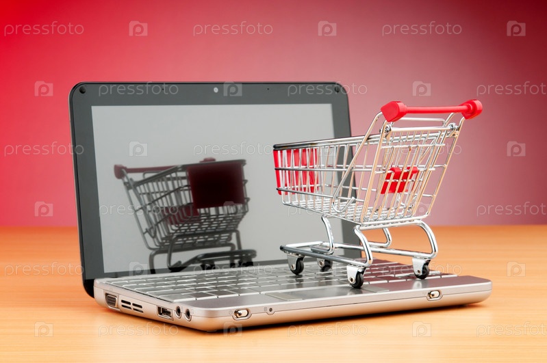 Ноутбук и тележка для покупок. Концепция интернет-магазина
