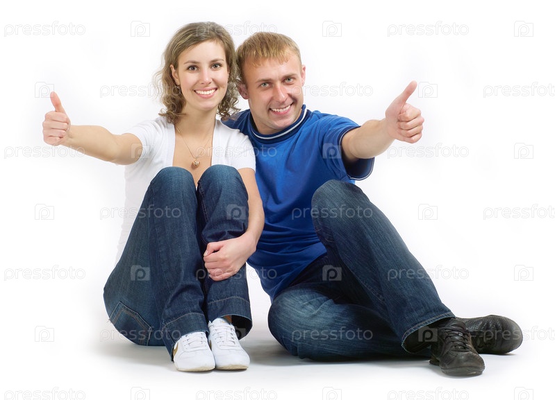 Портрет молодой счастливой пары, изолированной на белом фоне