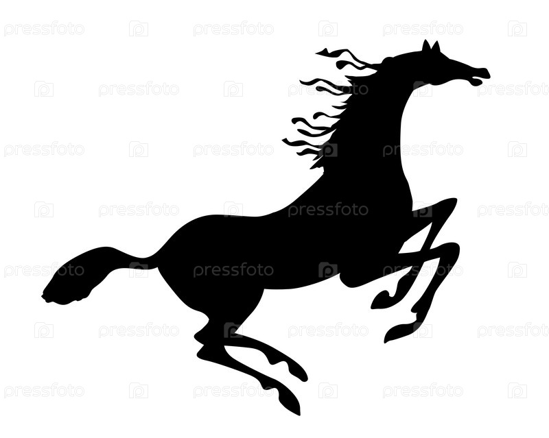 Черный силуэт лошади на белом фоне