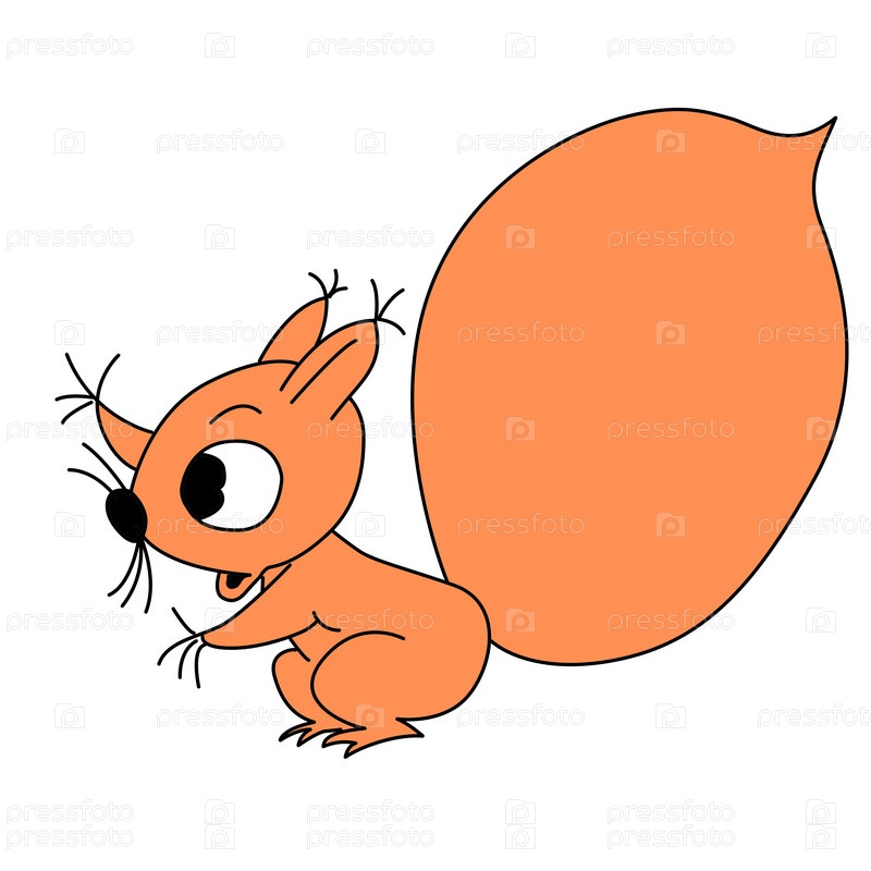 Нарисованная оранжевая белочка на белом фоне
