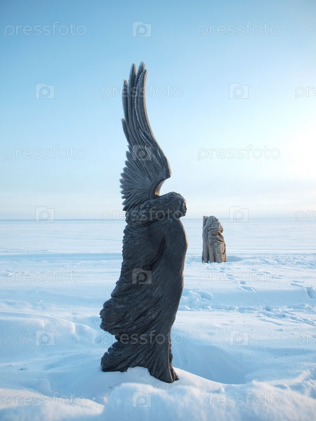 Статуя на фоне зимы